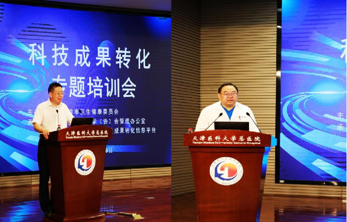 市卫生健康委科技教育处长主持会议并从政策体系保障、转化平台建设、专业活动服务等方面介绍了我市卫生健康系统全方位推进科技成果转化工作的积极举措。天津医科大学总医院院长牛远杰教授致欢迎词。