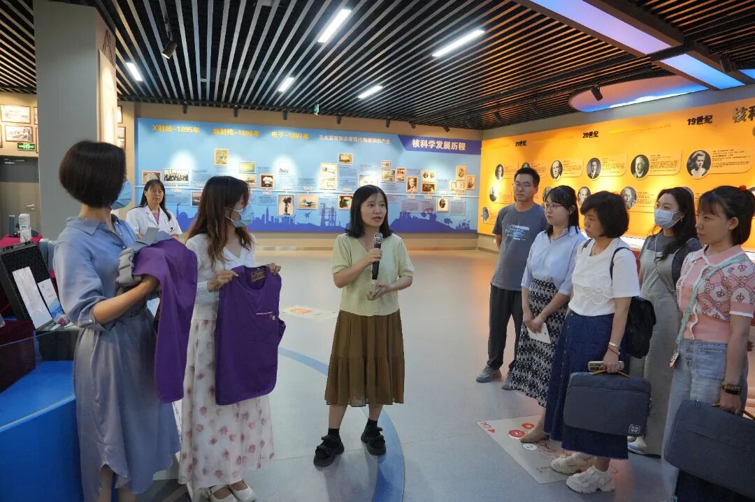 活动中,与会人员参观了位于中国医学科学院放射医学研究所的天津青少年核科学教育基地,基地通过展板展示、视频演示、互动体验等形式,全方位展示了放射所的核应急能力和自主研发系列产品,核辐射基本知识、核安全及其相关的健康知识。