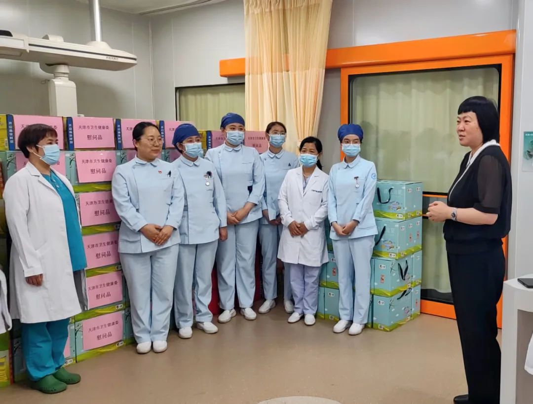 市天津医院党委书记徐卫国带领院领导班子成员及相关职能部门负责人向急诊、内科ICU、外科ICU、手术室、检验科等一线岗位的医务人员送上关怀与慰问,叮嘱大家注意防暑,劳逸结合,以良好的精神状态和身体状态救治患者。