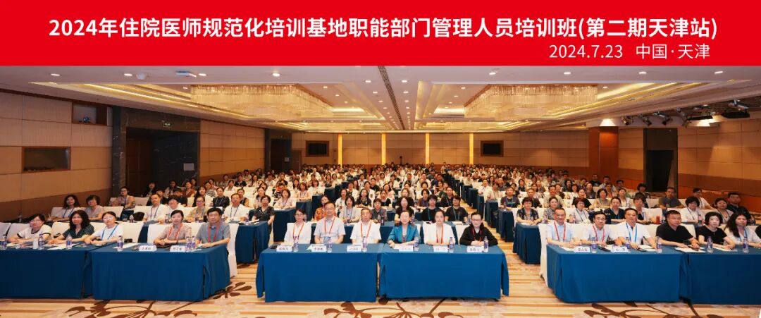 为进一步巩固和完善住院医师规范化培训(以下简称住培)制度,提高住培基地职能部门管理人员的综合素质、业务能力和管理水平,2024年7月23日至25日“2024年住院医师规范化培训基地职能部门管理人员(第二期)培训班”在天津顺利举办。此次培训班由中国医师协会主办、天津市毕业后医学教育委员会、天津市第四中心医院承办,来自全国23个省市近百家医疗卫生机构300余名住培基地职能部门管理人员参加培训。