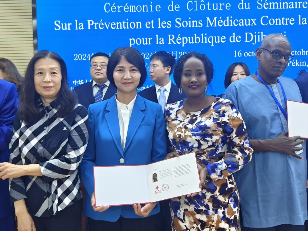 10月15日至10月26日,由国家商务部主办、国家卫生健康委国际交流与合作中心承办的“吉布提白内障防治技术培训班”在天津顺利落下帷幕。本期培训班由来自吉布提共和国的卫生官员和专业技术人员共计24人组成,全体学员圆满完成培训任务。在结业典礼上,国家卫生健康委国际交流与合作中心副主任王健、吉布提医保局副主任阿布迪拉伊、天津市卫生健康委副主任李洁出席并讲话,与会领导为全体学员颁发了结业证书。仪式活动由市卫生健康委合作交流处负责人主持。