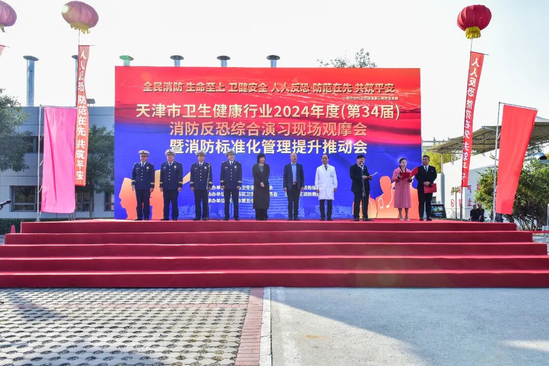 11月1日,市卫生健康委联合市消防救援总队,以“全民消防,生命至上,卫健安全;人人反恐,防范在先,共筑平安”为主题,共同举办了2024年度(第34届)全市卫生健康行业消防反恐综合演习暨消防标准化管理提升会议。本次演习由天津市滨海新区卫生健康委和滨海新区消防救援支队协办,由天津市第五中心医院具体承办,市卫生健康委韩金艳副主任和市消防救援总队有关领导出席了本次活动并讲话。