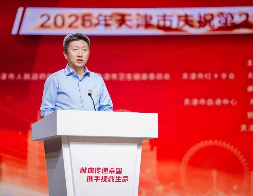 主题活动现场,陈世忠副秘书长代表天津市人民政府向全市广大无偿献血者致以节日的问候和崇高的敬意,并向长期以来关心和支持无偿献血工作的各区、各有关单位和各界人士表示衷心的感谢,向辛勤工作在无偿献血一线的广大卫生工作者表示亲切的慰问。他指出,无偿献血是一项崇高的社会公益事业,关系着人民健康、社会稳定、国家安全。我市2024年千人口献血率达15.2,位居全国第二,连续6届12年荣获全国无偿献血先进省称号。随着医疗技术水平和医疗保障体系的逐步完善,我市临床用血量持续攀升,从1999年的10.67万单位增至2024年的79.84万单位,临床用血长期处于“紧平衡”状态。希望有更多健康、适龄公民加入到无偿献血行列,各级政府和有关部门要更加重视和支持无偿献血工作,为献血者提供安全、便利和温馨的献血环境,积极组织无偿献血公益性宣传和团体无偿献血活动,持续提高市民无偿献血知晓率,营造良好社会氛围。