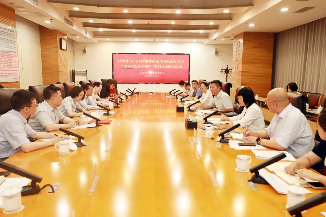 为推进落实国家卫生健康委、财政部《关于印发医学高层次人才计划实施方案等3个文件的通知》要求,加强国家医学高层次人才计划过程管理,搭建相互交流、支持合作平台,确保各项任务高质量完成,结合人才“登峰工程”实施,市卫生健康委于2025年7月22至23日,分别召开“国家杰出医师”“国家优秀青年医师”工作任务实施推动会。委党委书记、主任王栩冬,委副主任、市疾控局党组书记、局长韩金艳,以及来自天津医科大学、天津医科大学总医院、天津市肿瘤医院、天津市人民医院、天津市环湖医院的11位国家医学高层次人才计划当选人及团队成员、项目依托单位分管负责同志、人事部门负责人,市委组织部人才工作处、市卫生健康委相关处室负责同志参加会议。