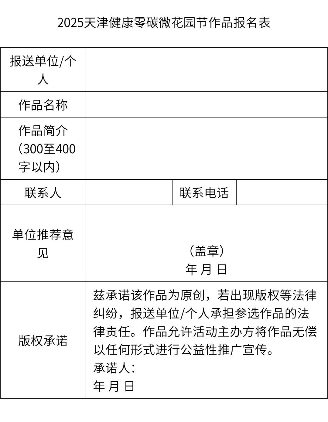 为深入学习贯彻党的二十届三中全会关于实施健康优先发展战略以及党中央、国务院关于美丽中国建设和健康中国战略的要求,落实习近平总书记在中央城市工作会议上的重要讲话精神和对爱国卫生运动的系列重要指示批示,健全现代卫生健康服务体系,进一步丰富爱国卫生运动内涵,提升我市爱国卫生运动宣传动员能力,打造具有鲜明特色和深刻内涵的健康品牌,着力建设绿色低碳的美丽城市,丰富城市内涵式发展途径,展现低碳循环发展可复制的“天津模式”,天津市爱卫办组织开展“2025天津健康零碳微花园节作品方案征集活动”。