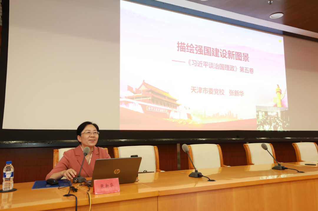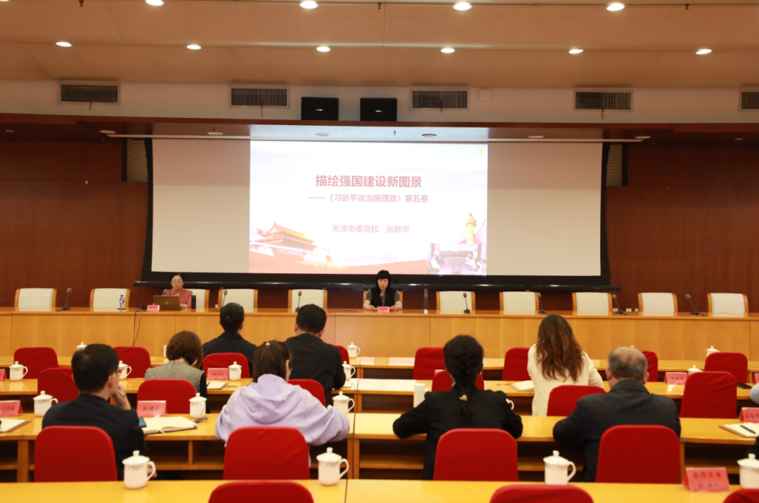 天津市委党校中共党史教研部主任、历史学博士张新华教授围绕“学习《习近平谈治国理政》第五卷”描绘强国建设新图景主题,从深刻领会著作重大意义、准确把握核心要义、扎实推进学习走深走实三个方面,作了主题鲜明、内涵丰富的辅导报告,为系统党员干部学懂弄通《习近平谈治国理政》第五卷提供了有力指导。