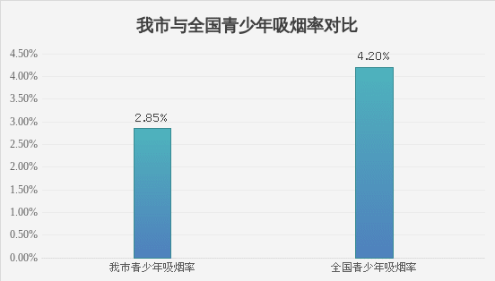 2023年我市青少年烟草流行率调查显示,我市青少年吸烟率为2.85%,较全国的4.2%相比低1.35个百分点,控烟工作处于全国领先水平。