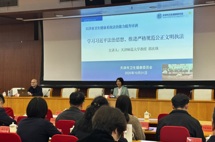 为深入学习贯彻党的二十届四中全会精神,深学深用习近平法治思想,2025年10月31日上午,市卫生健康委举办学习贯彻习近平法治思想专题培训会,邀请天津师范大学郭庆珠教授以《学习习近平法治思想推进严格规范公正文明执法》为题进行授课。