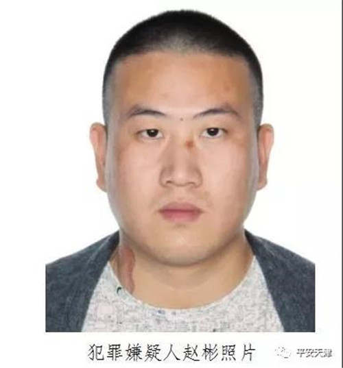 1、赵彬,别名“赵磊”,男,汉族,1992年5月29日出生,身高1.70米左右,长圆脸,体态中等,颈部有彩色文身,天津市宁河区口音,户籍地:天津市宁河区芦台镇赵家园小区9号楼801号身份证号:120221199205290330。