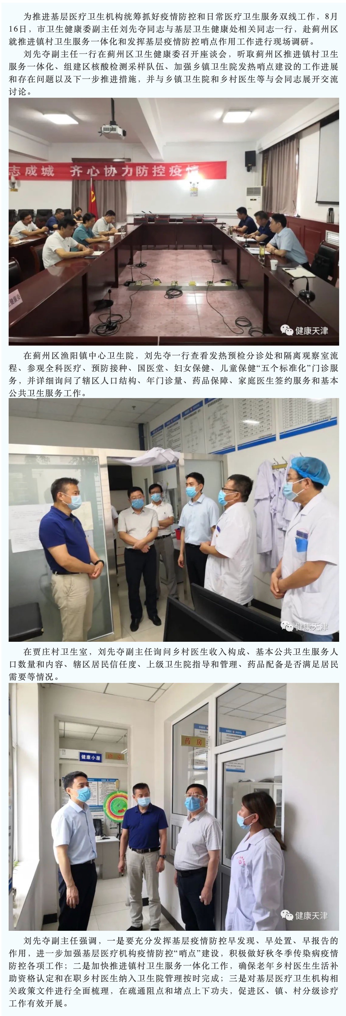 推进基层医疗卫生机构统筹抓好疫情防控和日常医疗卫生服务工作 市卫生健康委领导赴蓟州区开展工作调研
