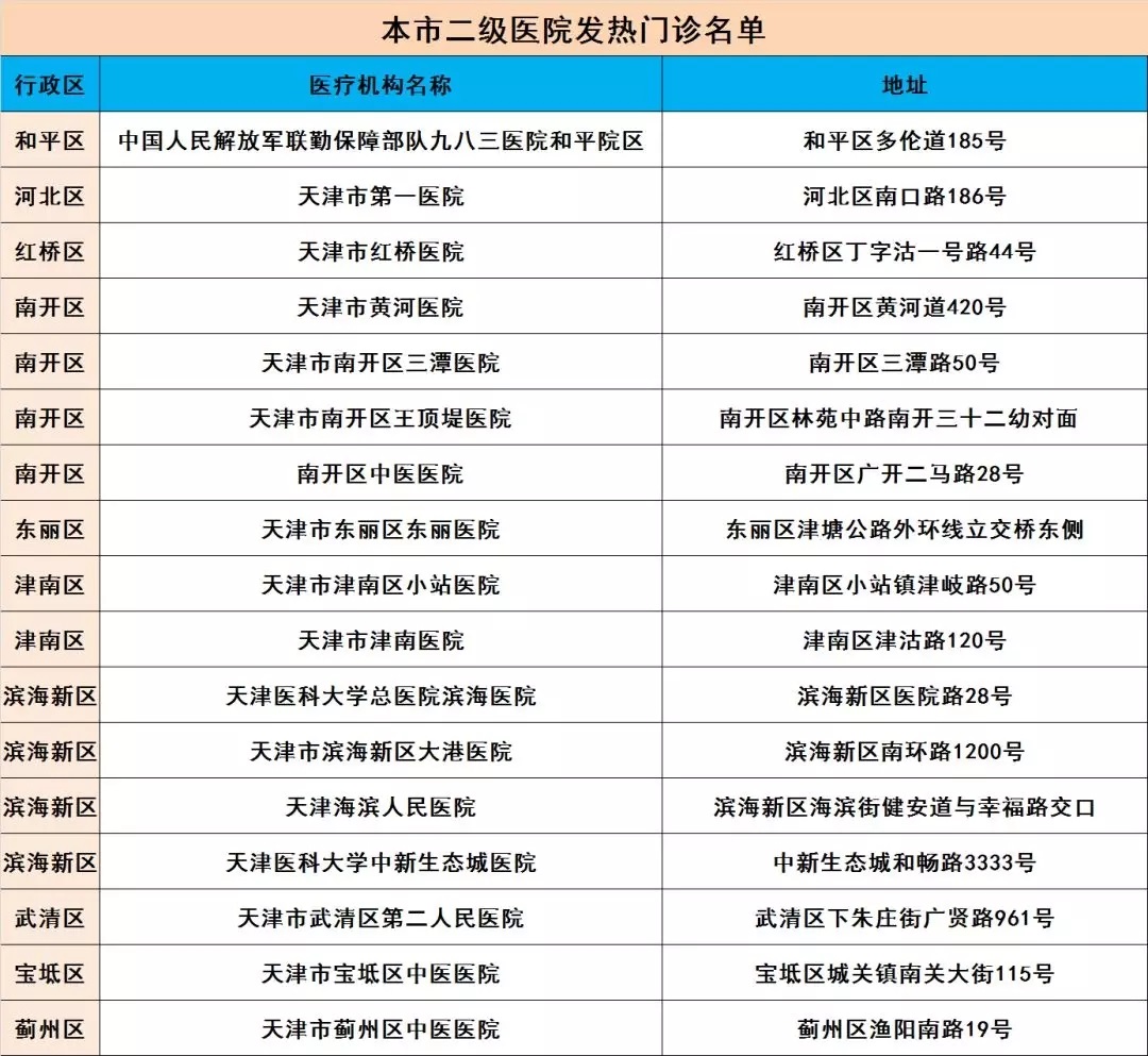 本市二级医院发热门诊名单