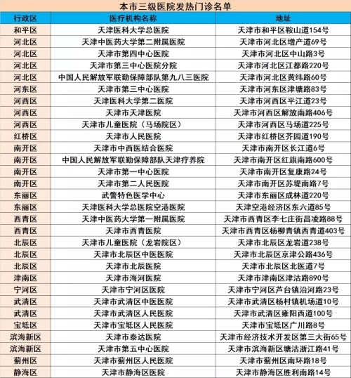 本市三级医院发热门诊名单