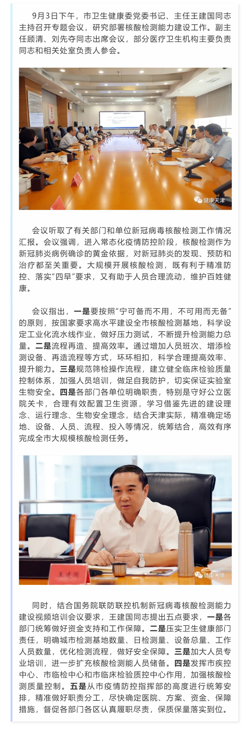 市卫生健康委召开新冠病毒核酸检测能力建设工作专题会议