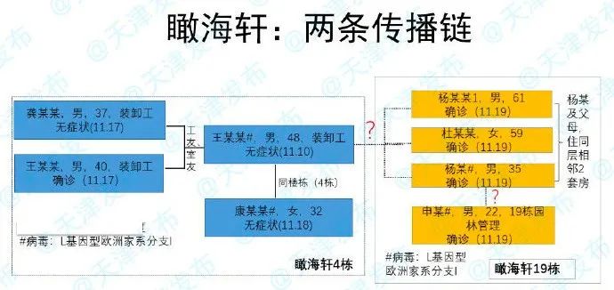 海联冷库经过粗测序,它的病毒基因属于是L基因型欧洲家系Ⅱ分支,瞰海轩属于L基因型欧洲家系Ⅰ分支,它们的上缘是一样的,就像家庭一样,是兄弟两个人,是不同的两个分支,从基因测序上可以判断这两起疫情是完全没有关联性的。