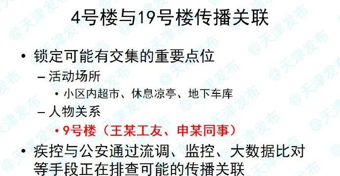 通过流行病学调查发现,9号楼里面有人员的交叉,9号楼里面住着4号楼感染者王某的工友,还住着在19号楼里面工作的申某的同事。