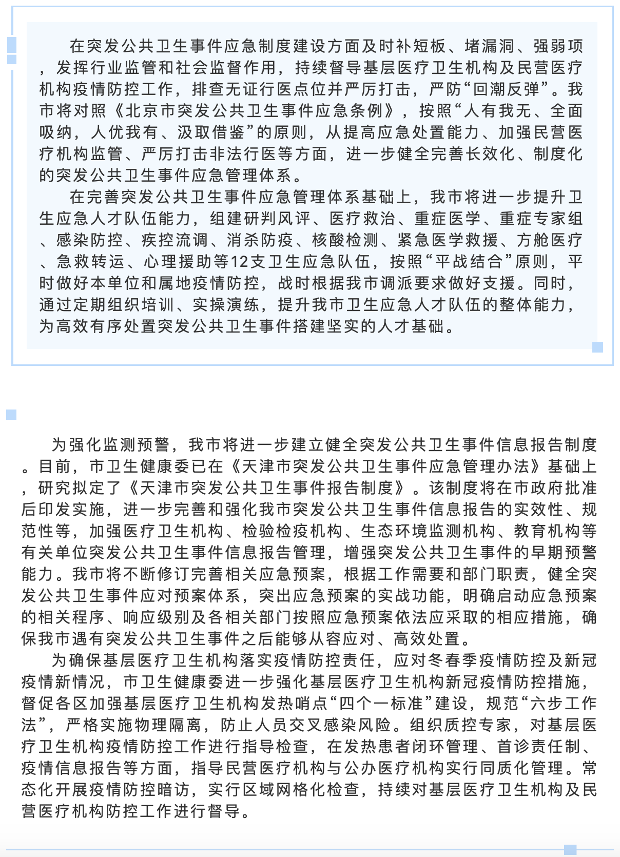 天津进一步健全完善突发公共卫生事件应急管理体系 长效化制度化提高应急处置能力