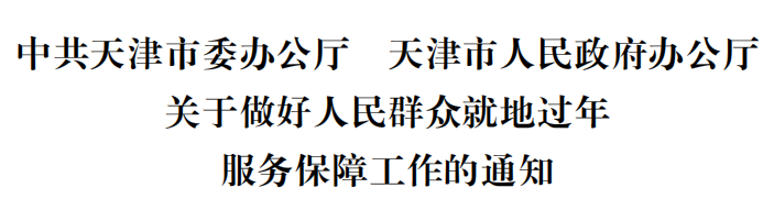 一、积极引导群众就地过年。各区各部门各单位要做好政策解释和沟通组织,倡导群众就地过年,非必要不出行,确需出行人员原则上不前往中高风险地区。机关、事业单位和国有企业人员要带头就地过年,人力资源社会保障、教育、工业和信息化、住房城乡建设、城市管理、交通运输、商务、国资等部门要摸清人员底数,逐人开展宣传教育,引导在津务工人员、尚未离校的师生就地过年。