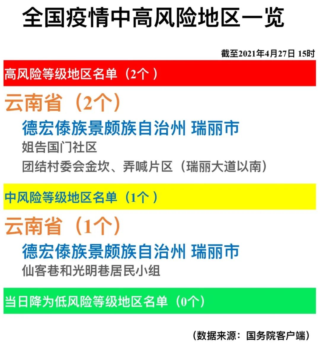 全国疫情中高风险地区一览(2021年4月27日)