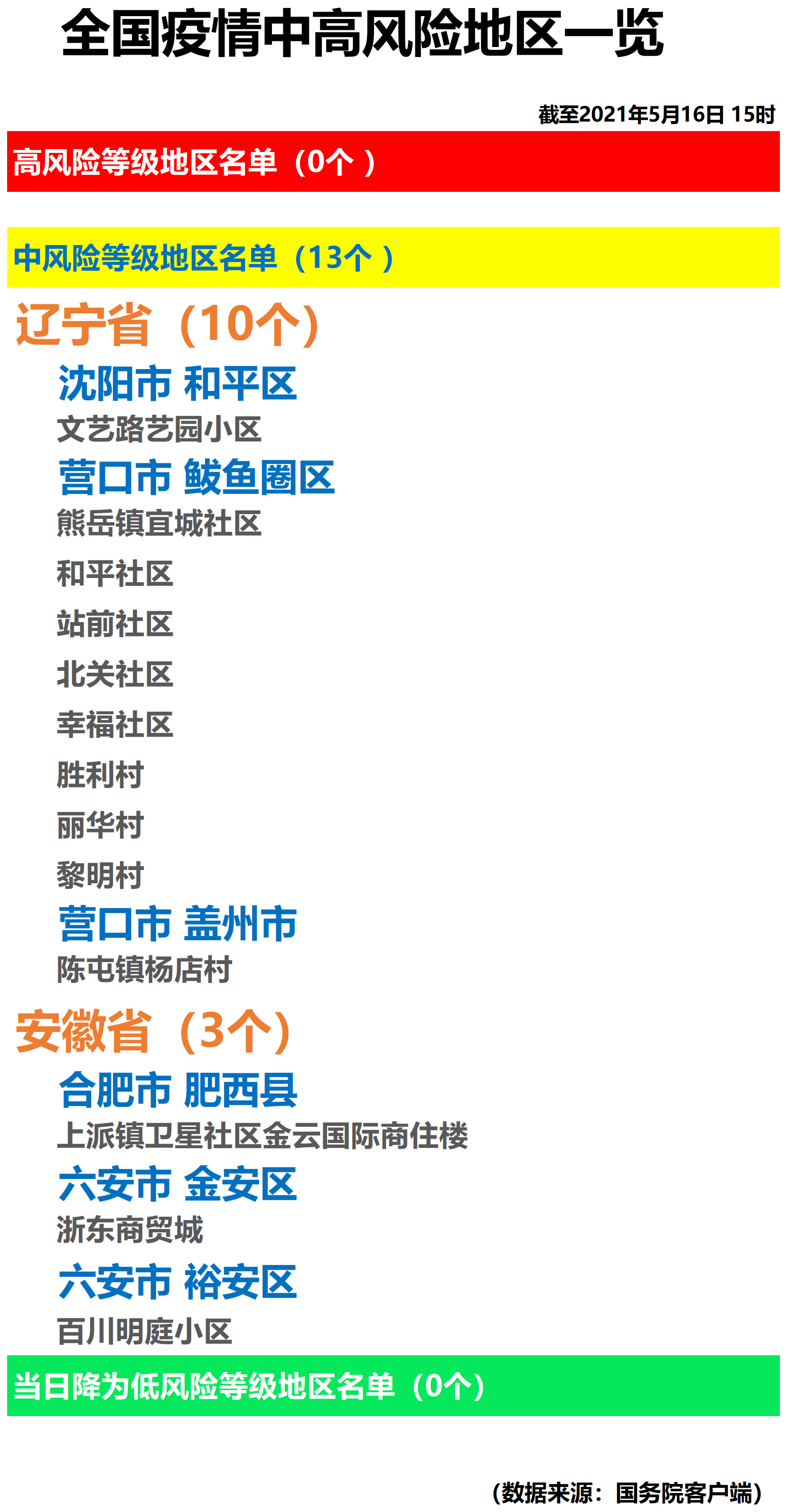 全国疫情中高风险地区一览(2021年5月16日)