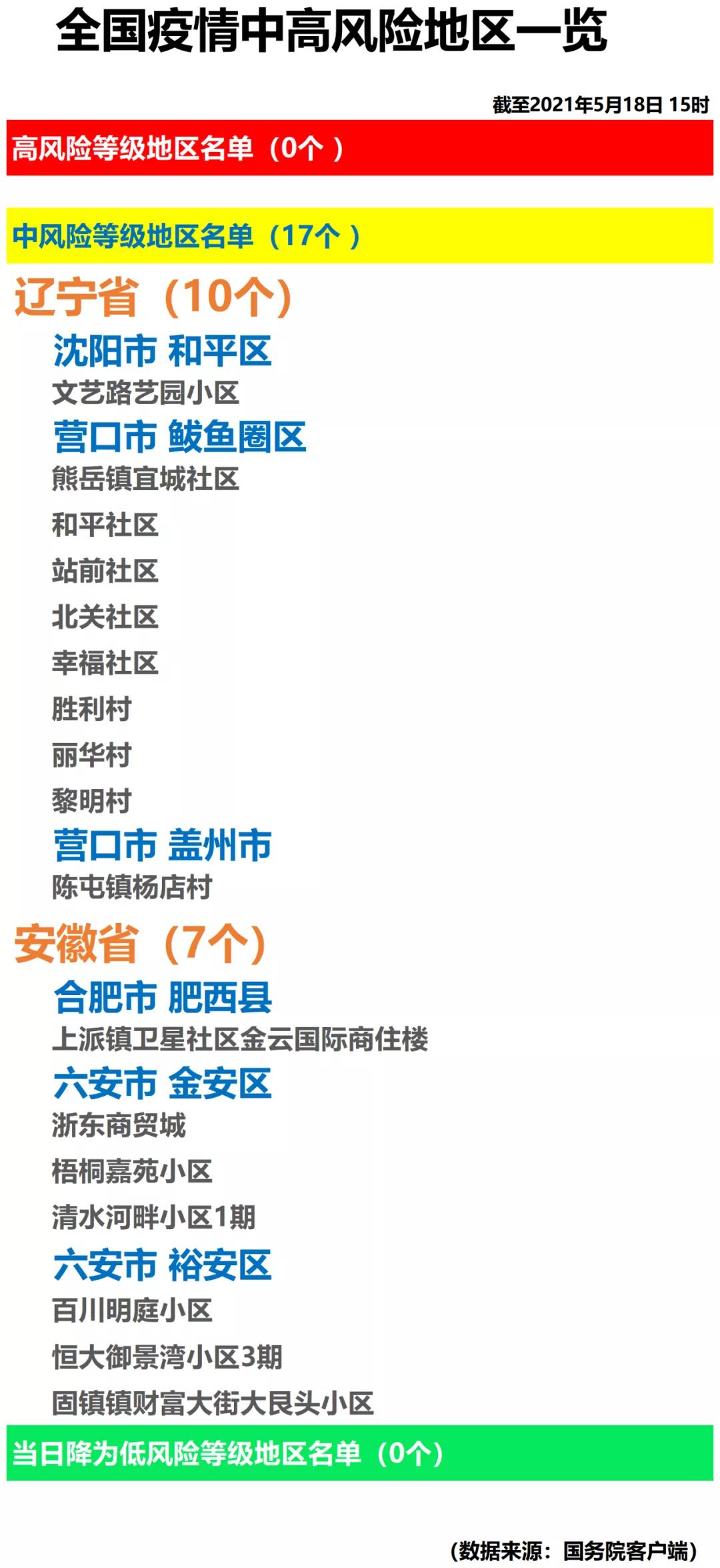 全国疫情中高风险地区一览(2021年5月18日)