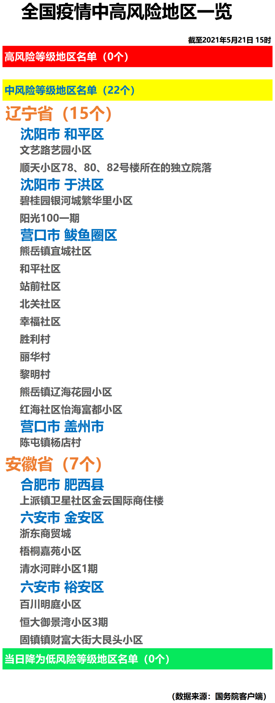 全国疫情中高风险地区一览(2021年5月21日)