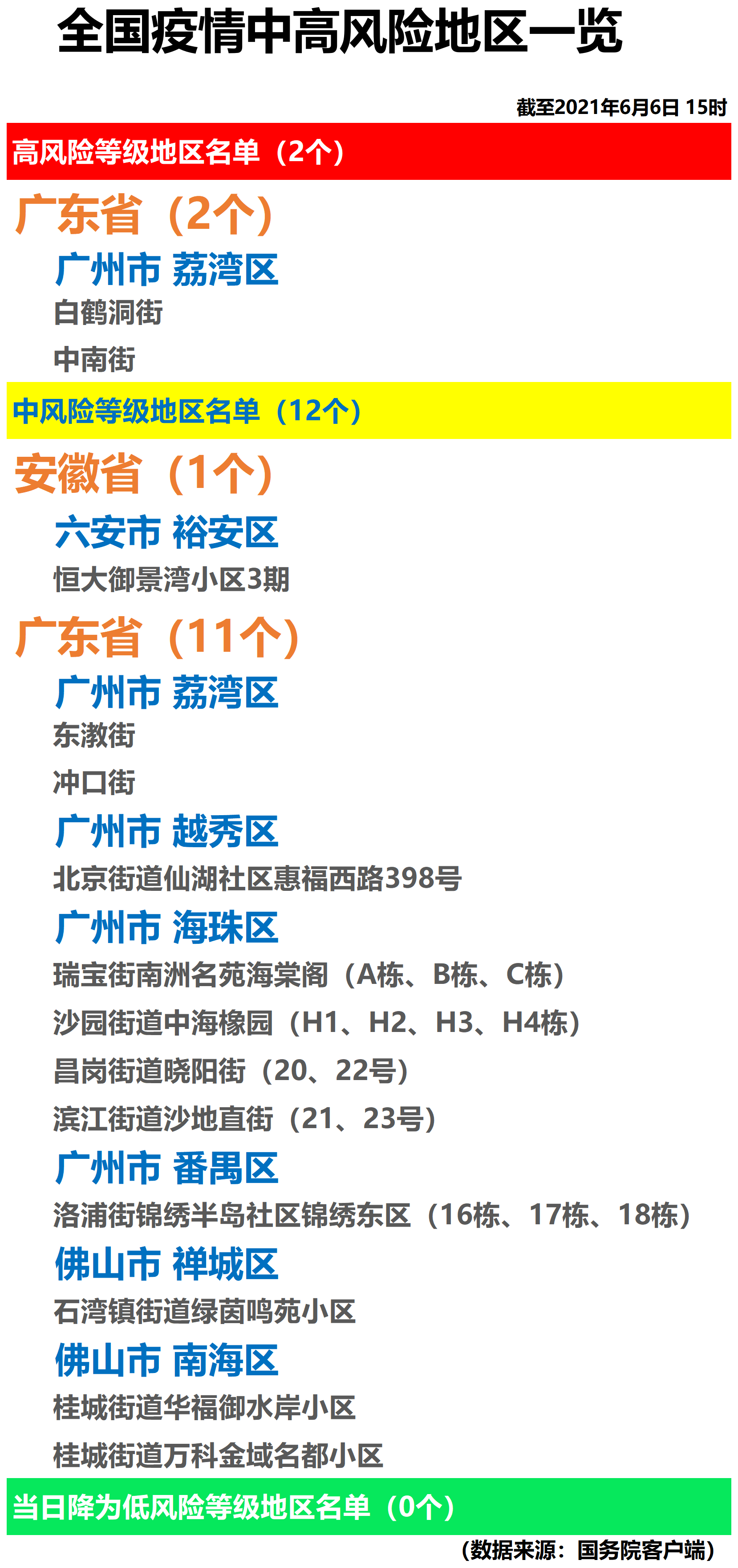 全国疫情中高风险地区一览(2021年6月6日)