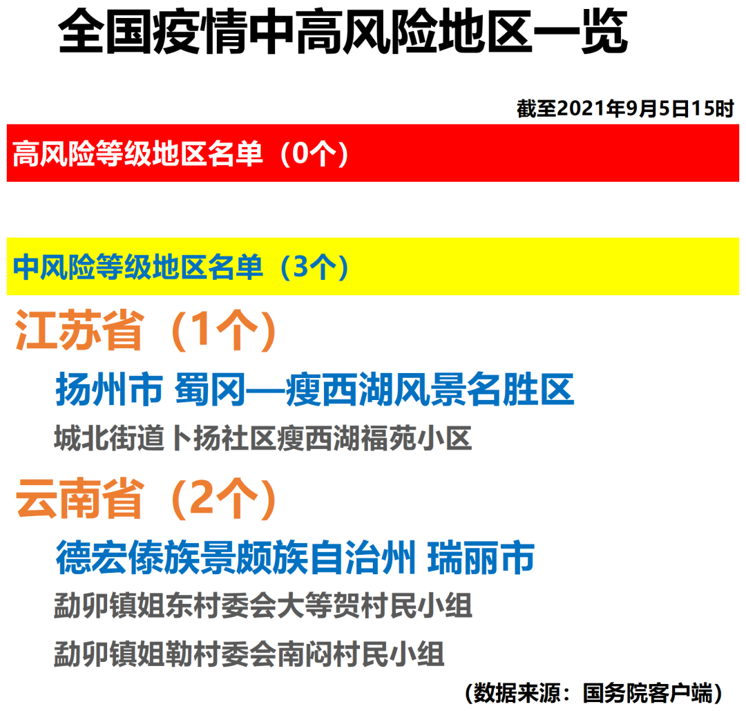 全国疫情中高风险地区一览(2021年9月5日)