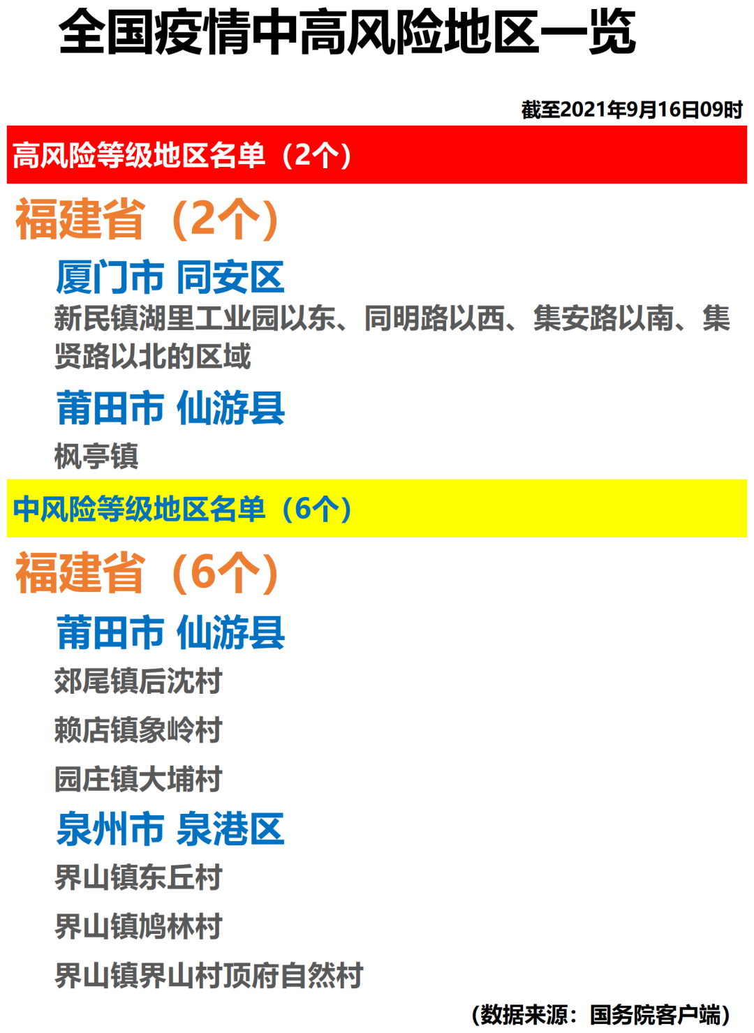 全国疫情中高风险地区一览(2021年9月16日)