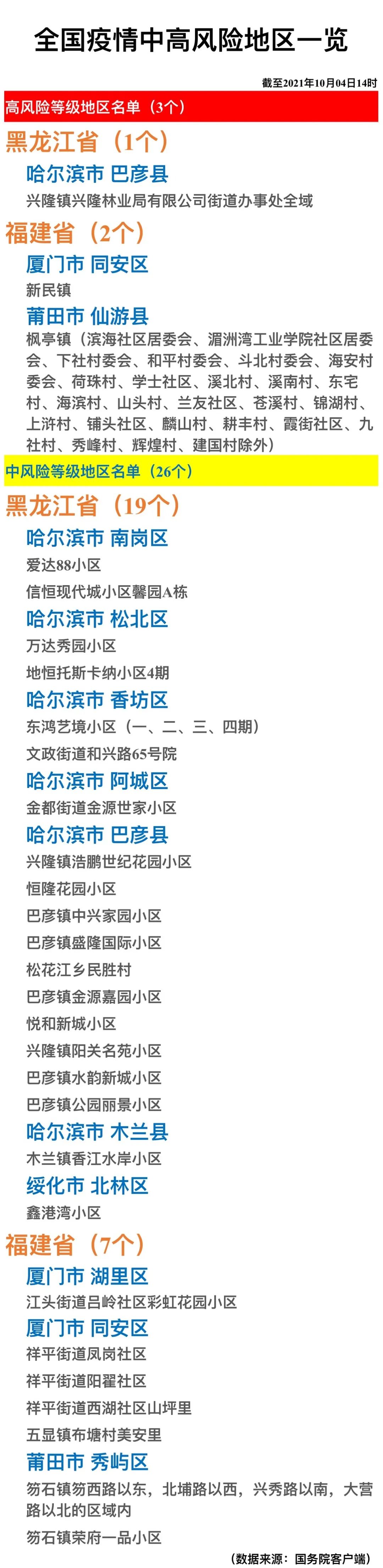 全国疫情中高风险地区一览(2021年10月4日)