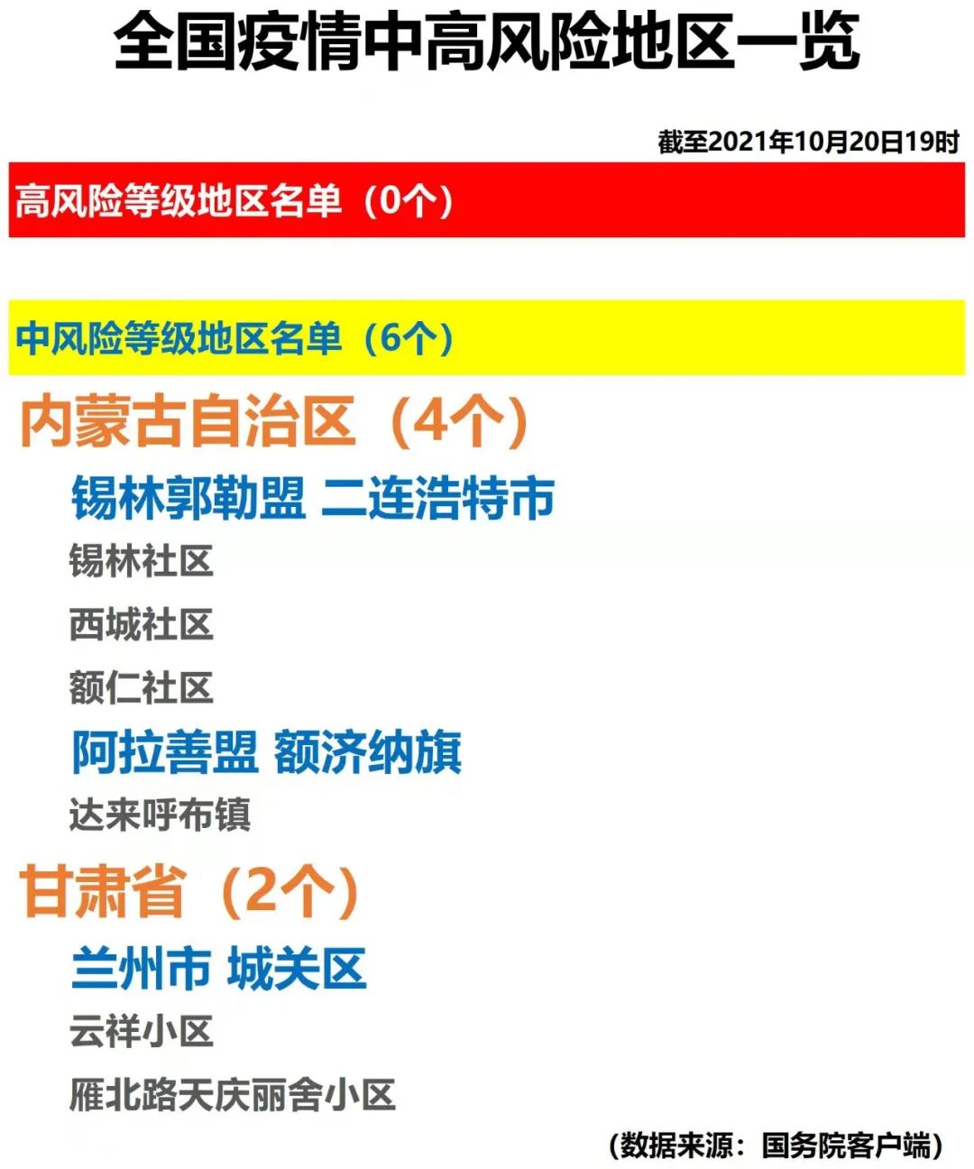 全国疫情中高风险地区一览(2021年10月20日)