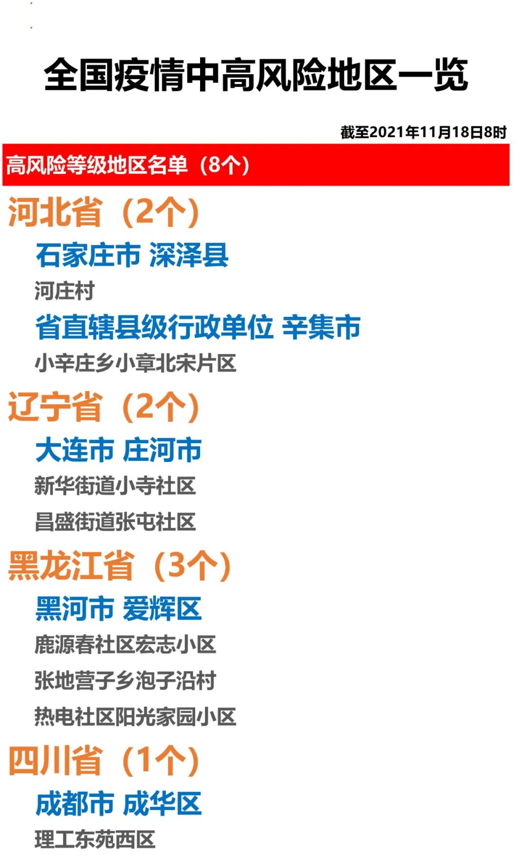 全国疫情中高风险地区一览(2021年11月18日)