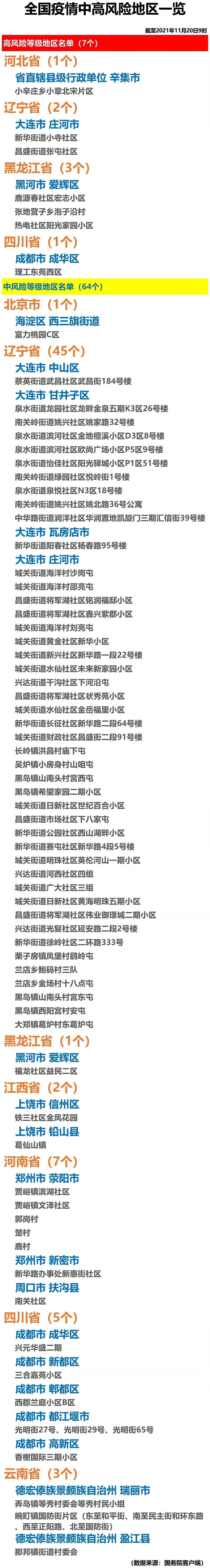 全国疫情中高风险地区一览(2021年11月20日)