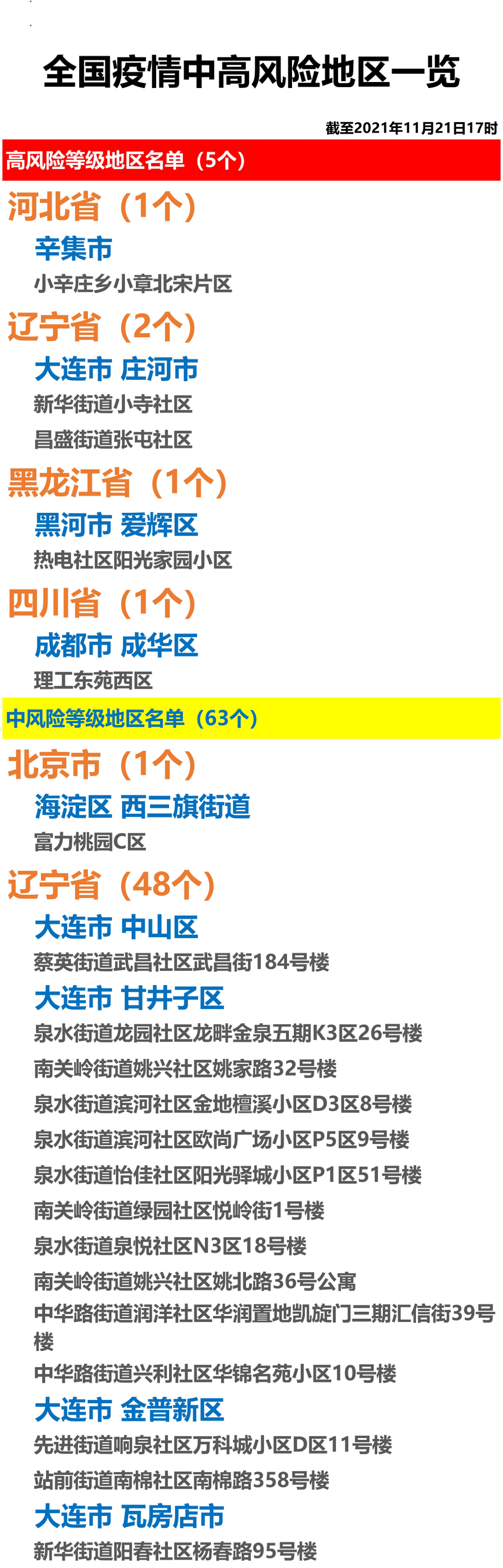 全国疫情中高风险地区一览(2021年11月21日)