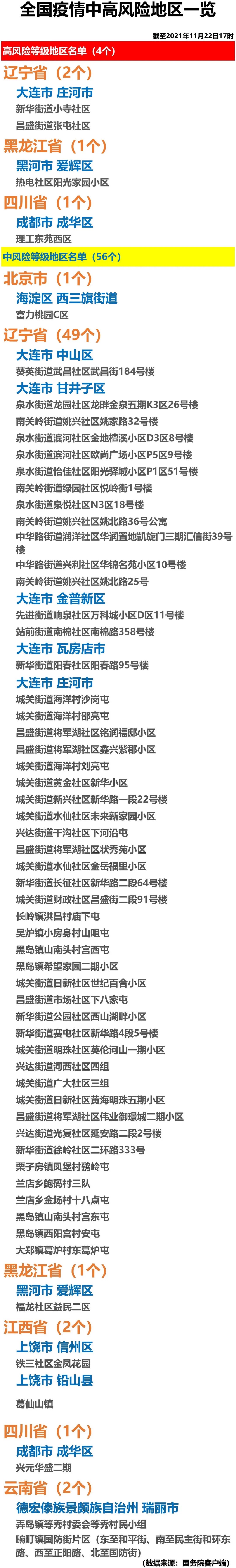全国疫情中高风险地区一览(2021年11月22日)