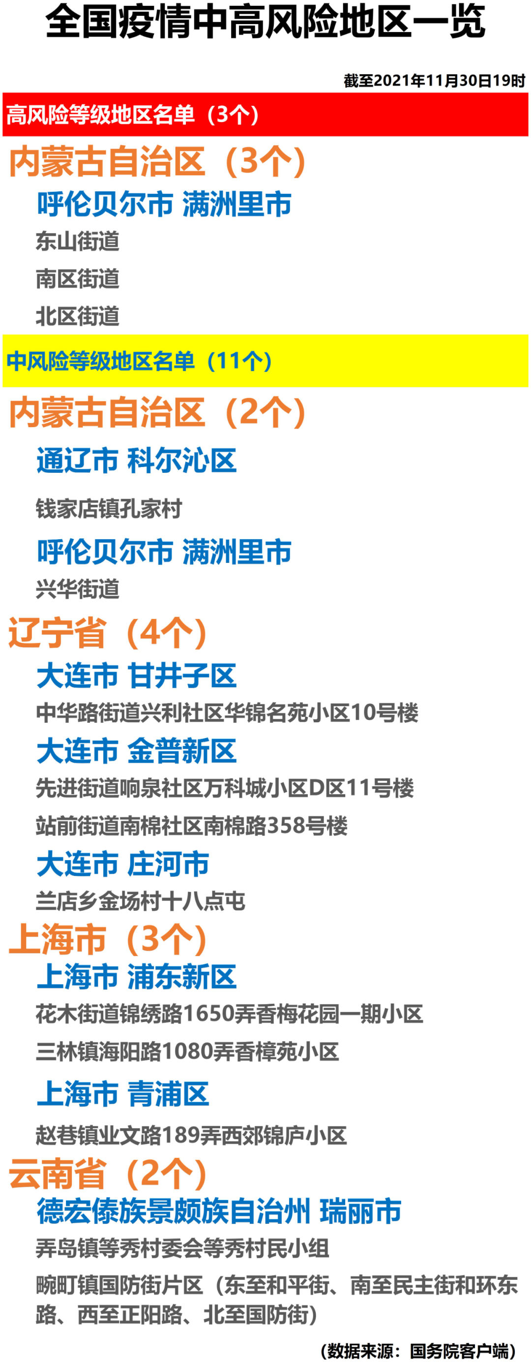 全国疫情中高风险地区一览(2021年11月30日)