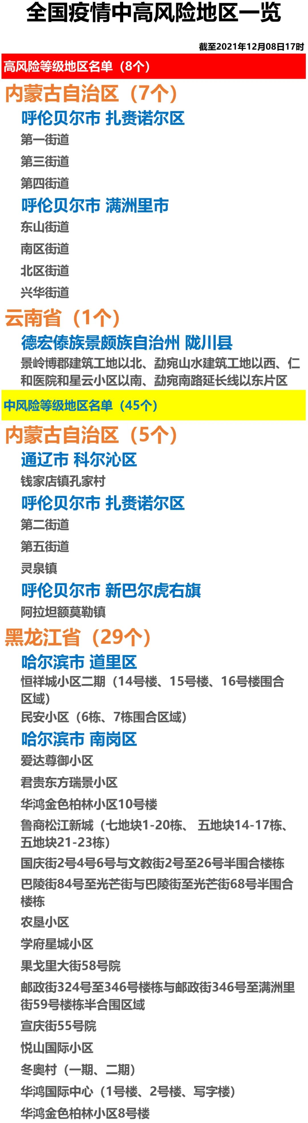全国疫情中高风险地区一览(2021年12月8日)