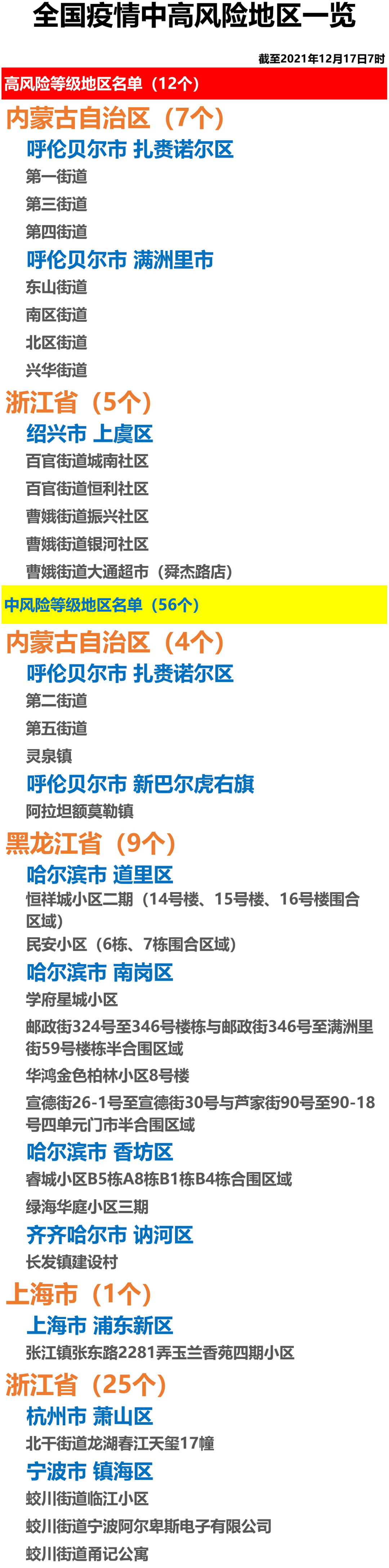全国疫情中高风险地区一览(2021年12月17日)