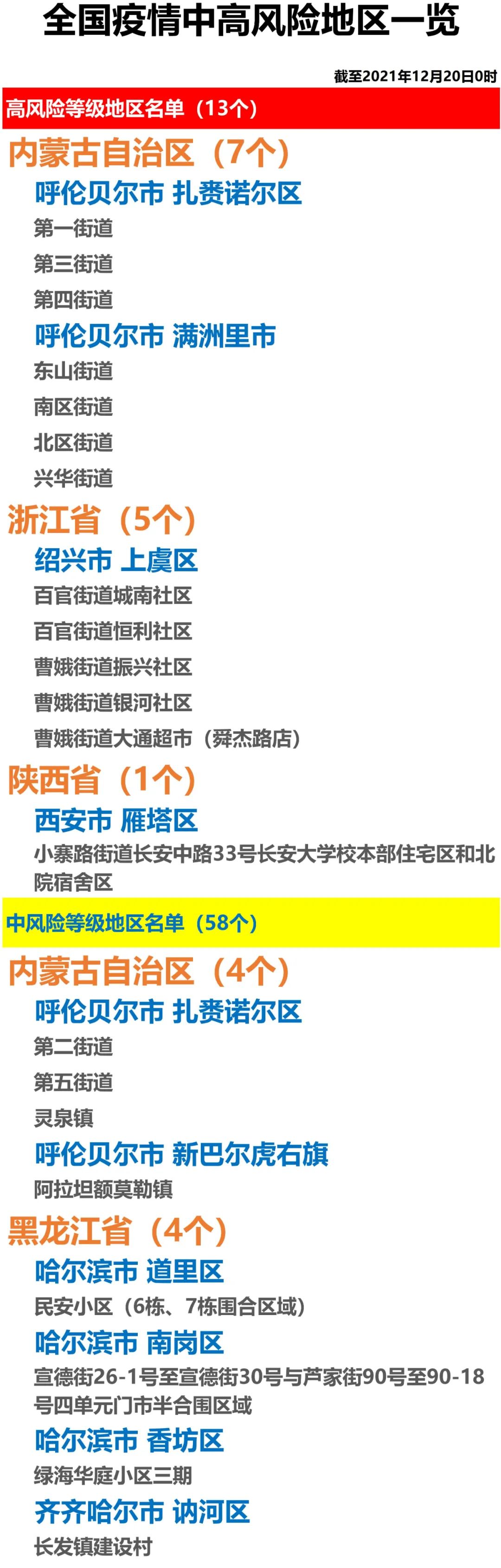 全国疫情中高风险地区一览(2021年12月20日)