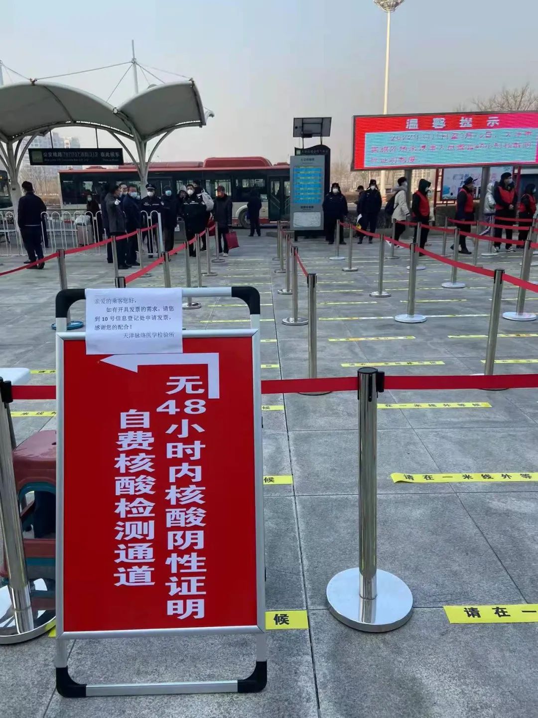 各区积极加强采样点现场的指挥调度,增加志愿者做好现场引导,严格落实防聚集、一米线等疫情防控要求。主要交通场站、医疗机构和实验检测机构认真做好人员配置和应急处置准备。天津南站新冠病毒核酸检测采样点设置10条采样通道,5条混采、5条单采通道,方便乘客选择。武清区黄庄卫生院在武清区城际站设置采样点,标示清楚,常规配备3名工作人员,根据人流量随时进行人员支援和采样点增加,现场秩序良好,无人员聚集。