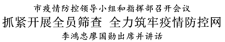 会议强调,开展全员筛查是对城市组织动员能力、治理能力的一次大考,是对各级领导干部政治执行力的实际检验。各区、各部门要坚决扛起政治责任,迅速进入应战状态,确保有力有序完成全员核酸筛查任务,以实际行动体现“两个维护”。要加强全市统筹,市防控指挥部加强集中统一指挥,强化市和区两级指挥部、各区各部门协调协同。各区要坚持大局为上,加强信息协查,服从全市人力物力统筹调度。要压实责任制,切实发挥党的领导政治优势、组织优势,各区党委主要负责同志要落实第一责任人责任,发挥基层党组织作用,加强组织动员,深入细致做好广大市民群众思想工作,争取群众的理解支持和全力配合。要坚持以人民为中心的发展思想,全力服务保障群众生活就医需求,确保市场保供稳价,切实维护社会大局稳定。
