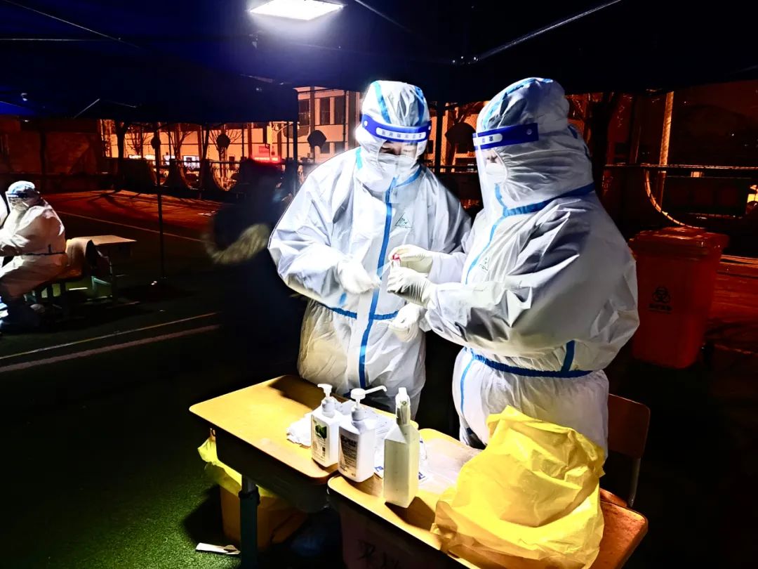 市环湖医院地处津南区,也是这次疫情的“风暴眼”,医院职工200余人因在防范区内居住,无法返岗上班。1月8日上午,院党委即发出集结令,60名医护、10名检验师闻风而动,第一时间进入津南封控区参战核酸采样检测。随着津南大筛告急,医院党委远程指挥在防范区居住的医务人员,发挥党员先锋模范作用和医务人员职责,由管控区的门办副主任前线指挥,临时组成64人核酸采样队,为津南区第二轮“大筛”贡献力量。