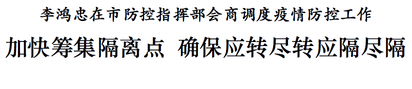 李鸿忠详细询问市卫生健康委负责同志隔离场所需求等情况,与正在开展隔离点征用储备工作的市指挥部相关工作组、市文旅局、市公安局等部门和有关区主要负责同志通话,研究商量加快筹措隔离房间、为应隔尽隔提供有力保障等工作。