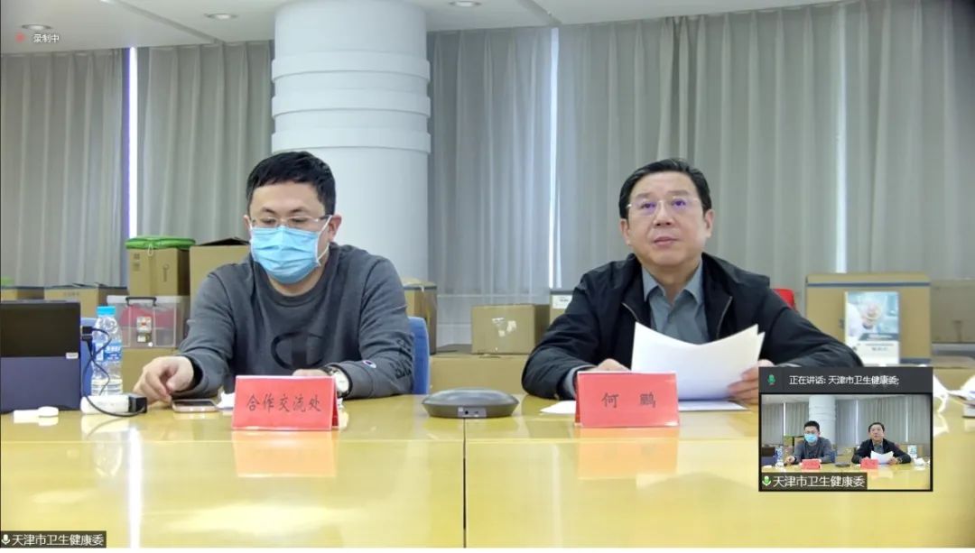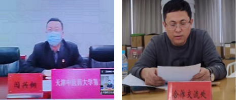 天津中医药大学附属第二医院负责同志代表派员单位向在外医疗队员致以节日慰问,并围绕选派、关心关爱、专家保障等进行交流发言。委合作交流处负责人宣读了国家卫生健康委党组书记、主任马晓伟《致全体中国医疗队队员的新春慰问信》、市卫生健康委《致援外医疗队的春节慰问信》。