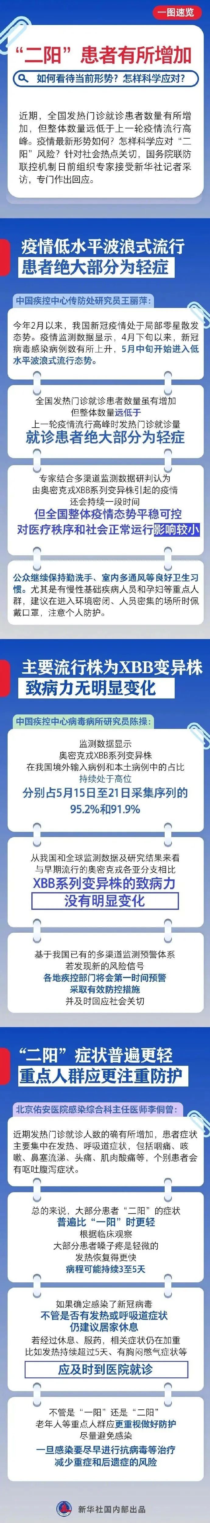 近期,全国发热门诊就诊患者数量有所增加,但整体数量远低于上一轮疫情流行高峰。疫情最新形势如何?怎样科学应对“二阳”风险?针对社会热点关切,国务院联防联控机制日前组织专家专门作出回应↓