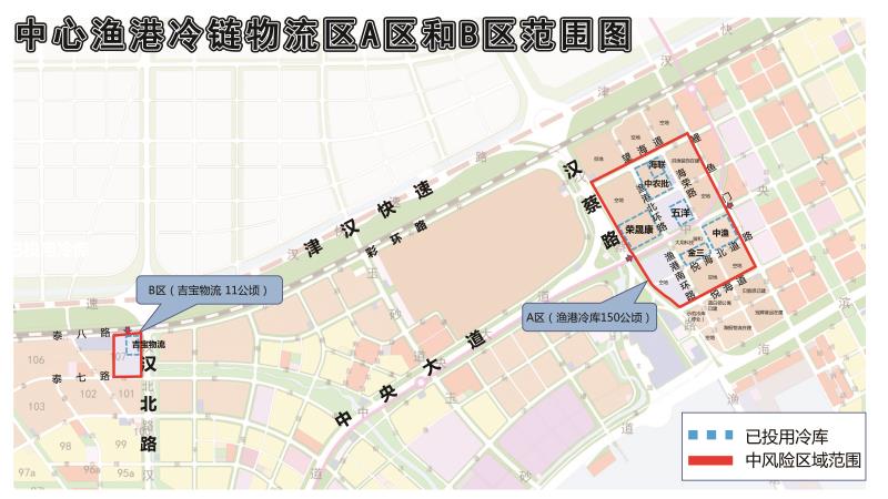 根据我市当前疫情形势和防控工作需要,按照国务院应对新冠肺炎疫情联防联控机制关于科学划分、精准防控等工作要求,经市防控指挥部研判,并经市防控领导小组同意,自2020年11月9日24时起,将滨海新区汉沽街、中心渔港冷链物流区A区和B区划定为中风险地区。天津市其他区域风险等级不变。