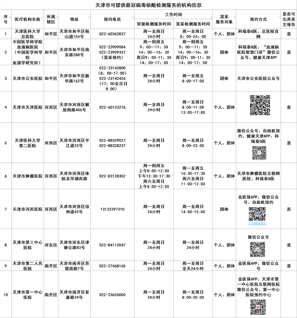 为进一步规范新冠病毒核酸检测服务,我市更新了可提供新冠病毒核酸检测服务的机构信息,现将更新后的对外提供新冠病毒核酸检测服务的医疗机构名录公布如下: