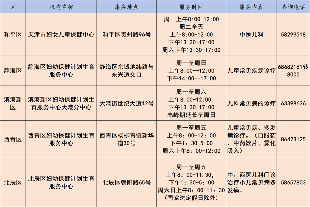 2023年天津市妇幼保健机构儿科门诊服务信息