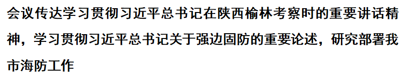 16日,市委常委会召开会议,学习贯彻习近平总书记在中青年干部培训班开班式上的重要讲话精神和在陕西榆林考察时的重要讲话精神。市委书记李鸿忠主持并讲话,市委副书记、市长廖国勋,市政协主席盛茂林出席。会议指出,习近平总书记在中央党校(国家行政学院)中青年干部培训班开班式上的重要讲话,充分体现了对年轻干部的关心关爱和殷切期望,为全党同志加强政治修养、强化政治历练、提高政治能力提供了根本指引。要把学习贯彻习近平总书记重要讲话精神同学习贯彻“七一”重要讲话精神结合起来,同深入推进党史学习教育结合起来,同换届工作结合起来,在学思用贯通、知信行统一上下功夫、见实效。要加强中青年干部教育培训,强化理论武装,严格党性锻炼,教育引导中青年干部坚定理想信念,铸牢对党忠诚的政治品格,切实做到“两个维护”。要强化实践锻炼,把优秀年轻干部放到基层一线、关键吃劲岗位、急难险重任务中经受磨炼,提升政治能力和工作水平。要坚持事业为上、以事择人,在“赛马场”上“相马”、“选马”,把敢于负责、勇于担当、实绩突出的干部选出来、使用好。会议强调,要认真学习领会习近平总书记在陕西榆林考察时的重要讲话精神,坚定不移推动绿色高质量发展,完整、准确、全面贯彻新发展理念,以实现“双碳”目标为牵引,推进能源利用绿色化,加快打造绿色产业体系,促进经济社会发展全面绿色转型。践行以人民为中心的发展思想,扎实开展“我为群众办实事”实践活动,着力解决“一老一小”等群众“急难愁盼”问题。全面贯彻党的教育方针,落实立德树人根本任务,深入推进“双减”工作,切实办好人民满意的教育。抓好文化遗产保护和传承工作,让传统文化永葆生机、焕发魅力。加强党对“三农”工作的领导,全面推进乡村振兴。要大力发扬党的优良传统,加强调查研究,善于制定针对性强、切实可行的政策措施,统筹解决战略问题和现实问题,务求取得实效。会议学习贯彻习近平总书记关于强边固防的重要论述,听取关于我市海防工作情况的汇报,强调要深入贯彻落实党中央决策部署,牢固树立“一盘棋”思想,推进我市海防工作体制机制建设、联防联控体系建设、海防力量建设,优化海防共建共享格局,服务海防形势任务新需求,坚决筑牢首都政治“护城河”。