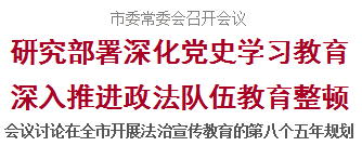 28日上午,市委常委会召开会议,传达学习党史学习教育中央第三指导组工作要求,听取我市党史学习教育开展情况汇报;传达学习全国政法队伍教育整顿中央第二督导组关于全市教育整顿工作要求,研究贯彻落实措施;讨论在全市开展法治宣传教育的第八个五年规划。市委书记李鸿忠主持并讲话,市委副书记、市长廖国勋,市人大常委会主任段春华出席。
