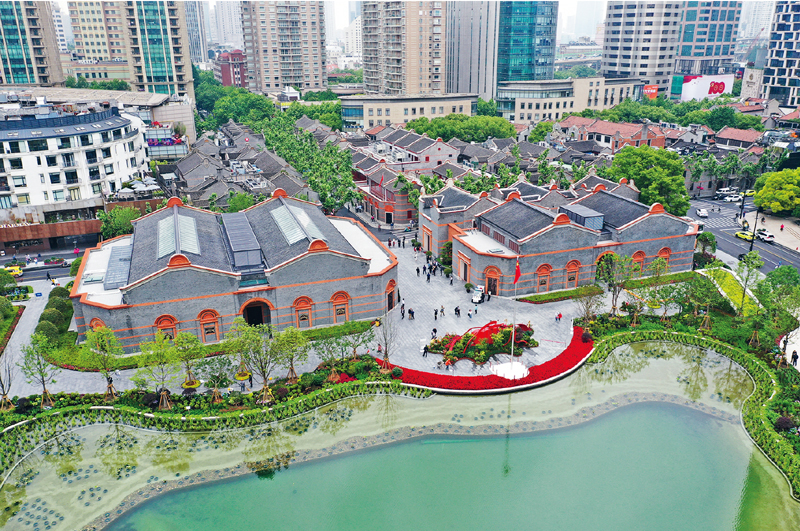 2021年6月3日,位于上海市的中国共产党第一次全国代表大会纪念馆全新开放,基本陈列“伟大的开端——中国共产党创建历史陈列”共展出612件文物展品,较原先基本陈列展出的文物数量扩容3倍多。图为纪念馆俯拍图(2021年5月20日摄)。孟雨涵/摄